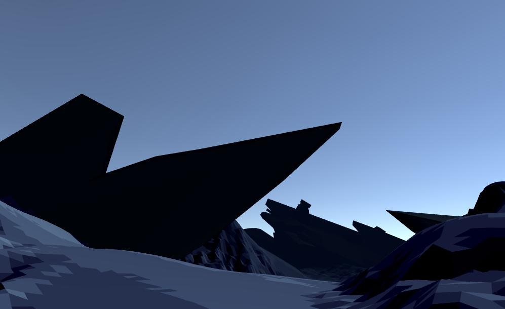 Early tests used a model I had created for a previous project, ILLAL, and I took a lot of the shaders and visual lessons I’d learned from that to create a concise world for the game to take place in. With time limited on my part, I worked to make maximum use of minimal resources—finding a striking look without having to create too many art assets and using careful camera work to hide how small the game world actually was. As CAP is effectively a single conversation, I sought to strike Nelson’s emotional beats through careful camera work, strong silhouetting and using both the time of day and Snow’s escalating score to raise the stakes as the final hour approaches.
