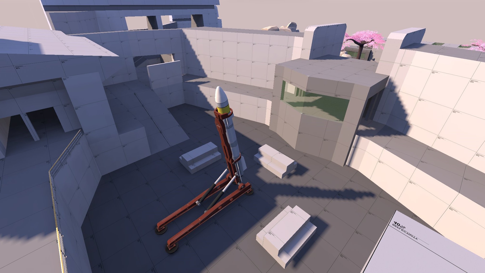 I chose Team Fortress 2 both for its breadth of character verbs (mobility, recon, defensive tools) and similar mechanics (spawn rooms, pickups, the Arenas mode in TF2 having a near-identical structure). I knew from the outset that I wanted this map to be themed after Apex Legends’ floating city, Olympus, a map I so deeply adore I wrote a love letter to it on my last day at PC Gamer.